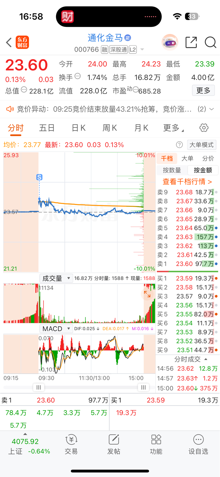$通化金马(SZ000766)$ 还好24.10卖了你