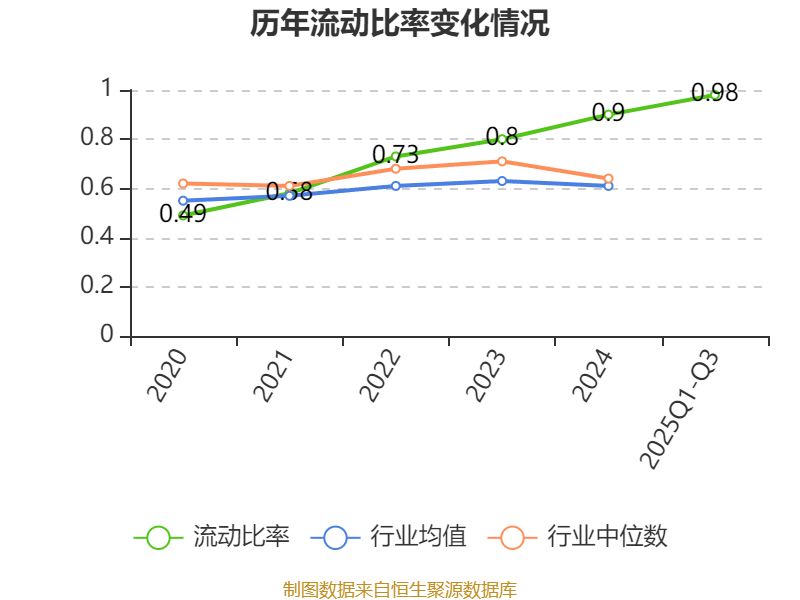 2025年前三季度,公司流动比率为0.98,速动比率为0.9。