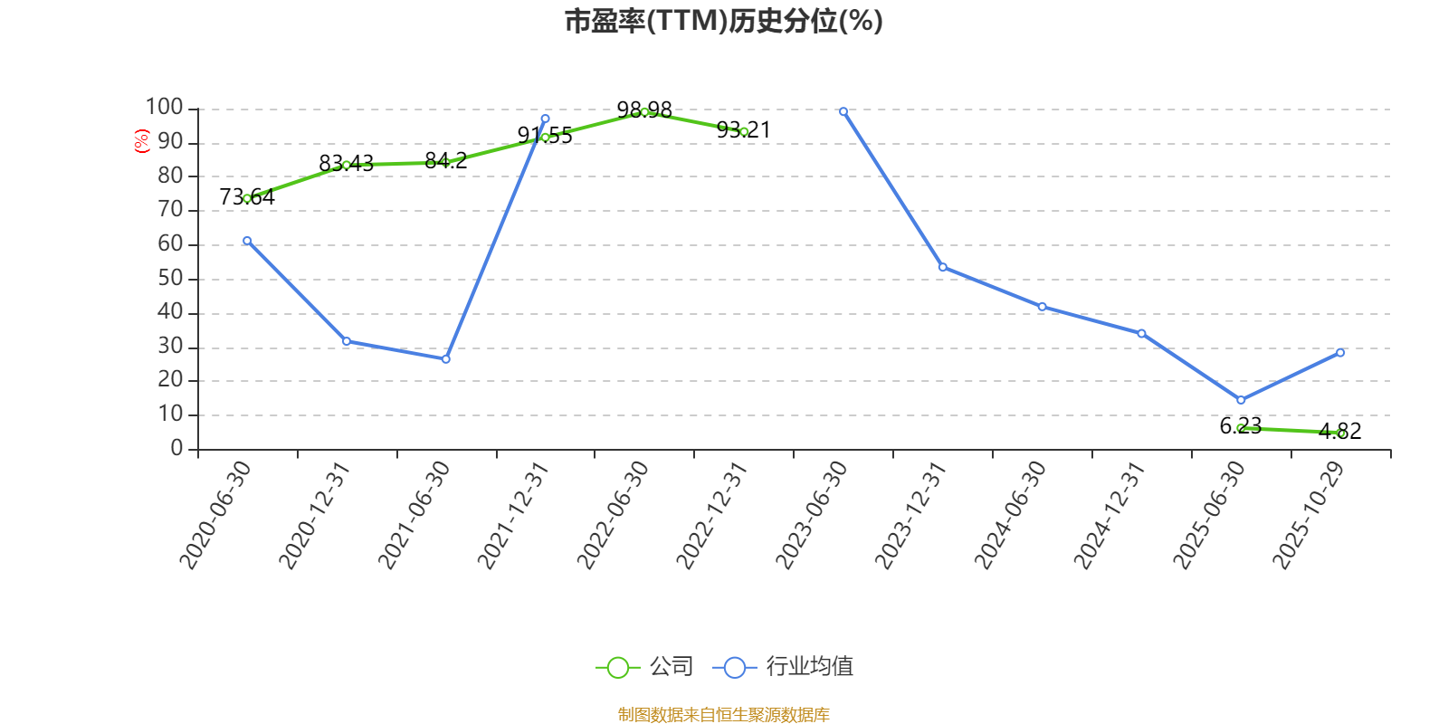 市盈率、市净率为负时,不显示当期分位数,会导致折线图中断。