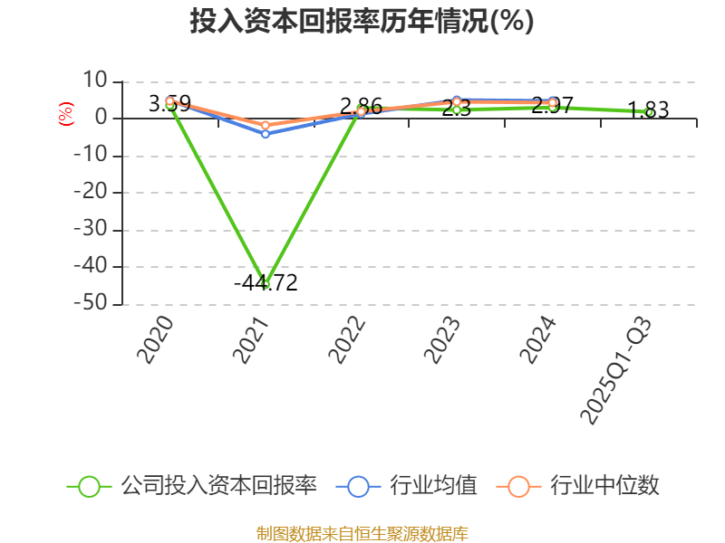 盈利能力方面, 2025年前三季度公司加权平均净资产收益率为2.07%,同比上升11.23个百分点。公司2025年前三季度投入资本回报率为1.83%,较上年同期上升0.4个百分点。