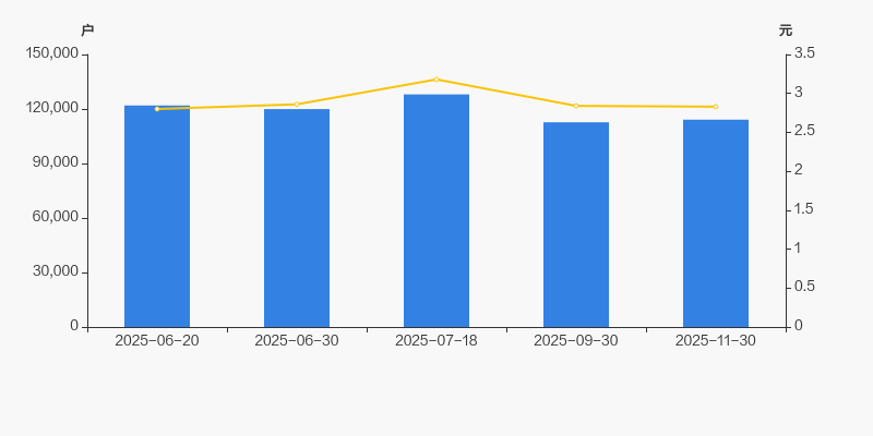 2025年6月20日至今,公司股东户数有所下降,区间跌幅为6.41%。2025年6月20日至2025年11月30日区间股价上涨1.07%。