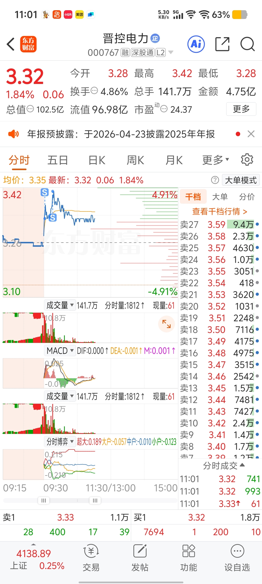 $晋控电力(SZ000767)$ 跑路爽歪歪