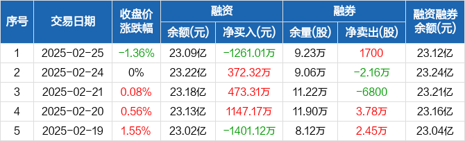 中航西飞:融资净偿还1261.01万元,融资余额23.09亿元(02-25)