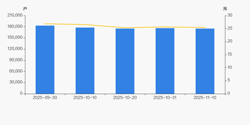 2025年9月30日至今,公司股东户数有所下降,区间跌幅为4.39%。2025年9月30日至2025年11月10日区间股价下降5.36%。