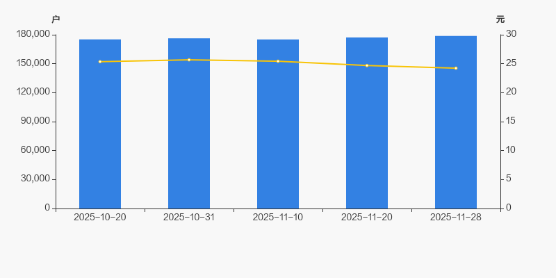 2025年10月20日至今,公司股东户数有所增长,区间涨幅为2.03%。2025年10月20日至2025年11月28日区间股价下降4.42%。
