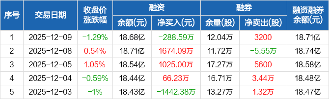 中航西飞:融资净偿还288.59万元,融资余额18.68亿元(12-09)