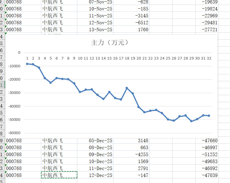 中航西飞近期主力资金减少
