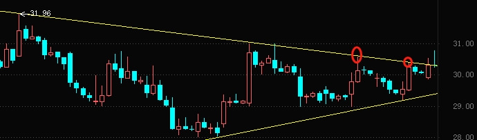 60分钟k线,周二一次,昨天一次,今天上午空欢喜一场,下午能不能止跌?