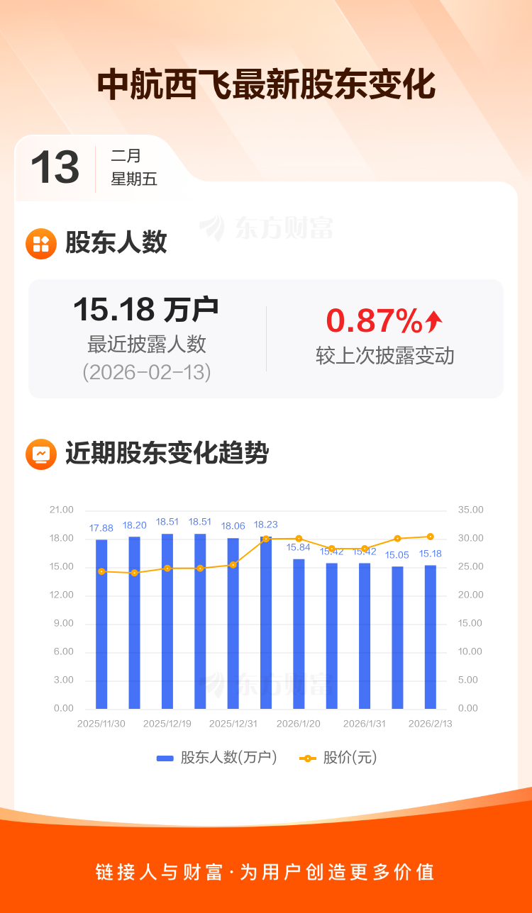 中航西飞:截至2月13日最新股东户数15.18万户,较上期增加0.87%