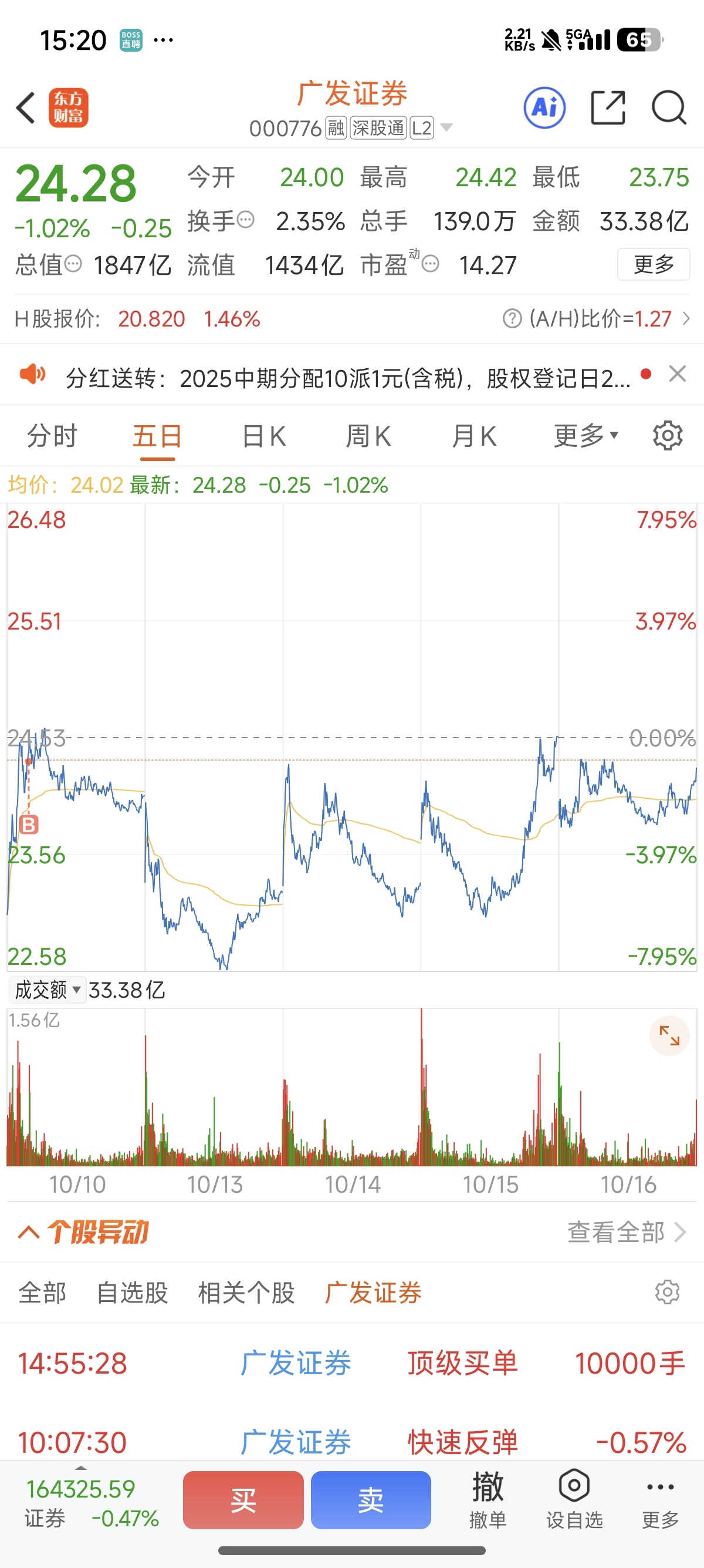 $广发证券(SZ000776)$ 尾盘抢筹,不知是好是坏,最近格局相对较久的票