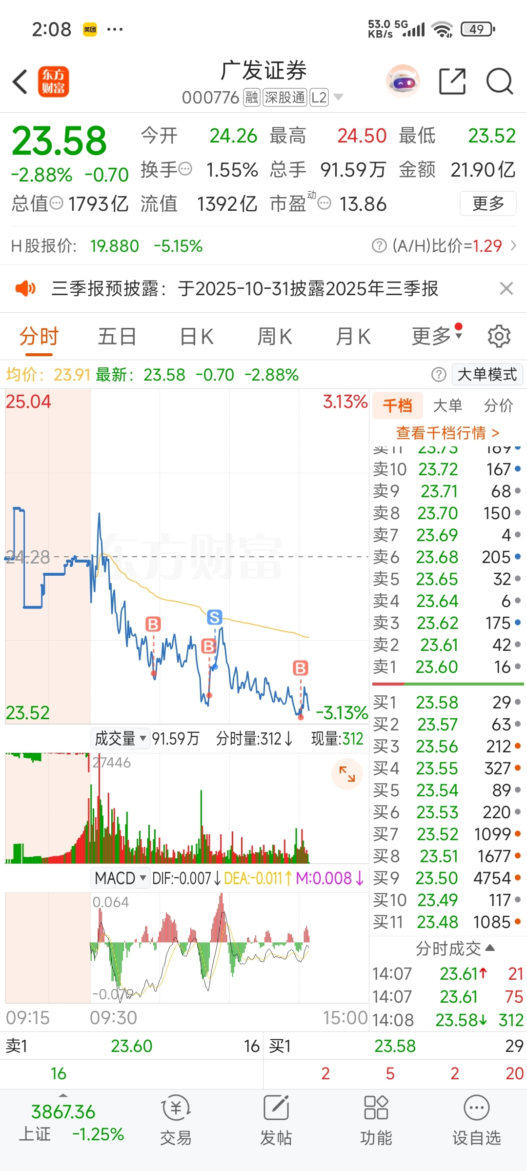 $广发证券(SZ000776)$ 跌1个点1w,慢慢做长线了