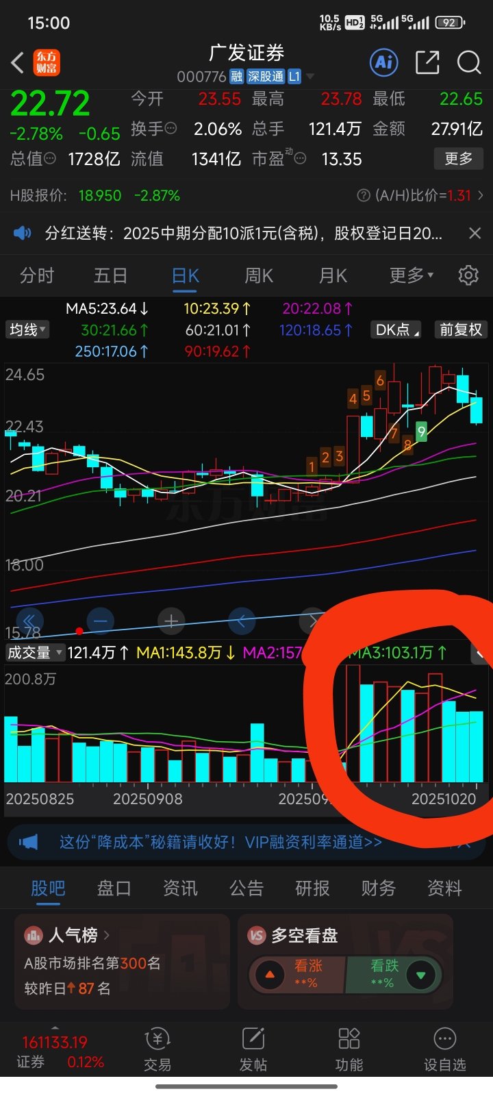 $广发证券(SZ000776)$ 高位持续放量意味着什么?