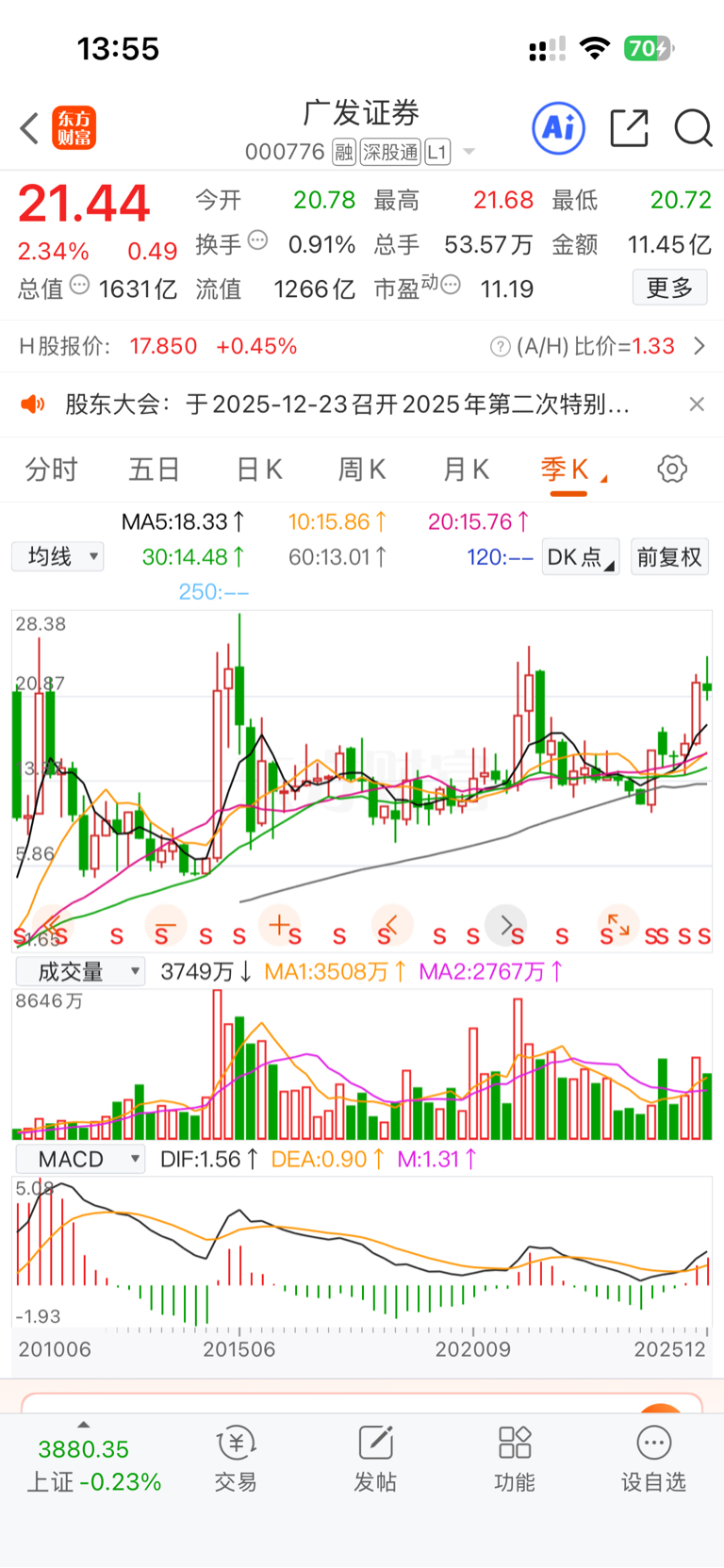 广发2015年的高点还没有到,拖后腿严重!感觉广发是自我吹捧的那种,败絮其中,感