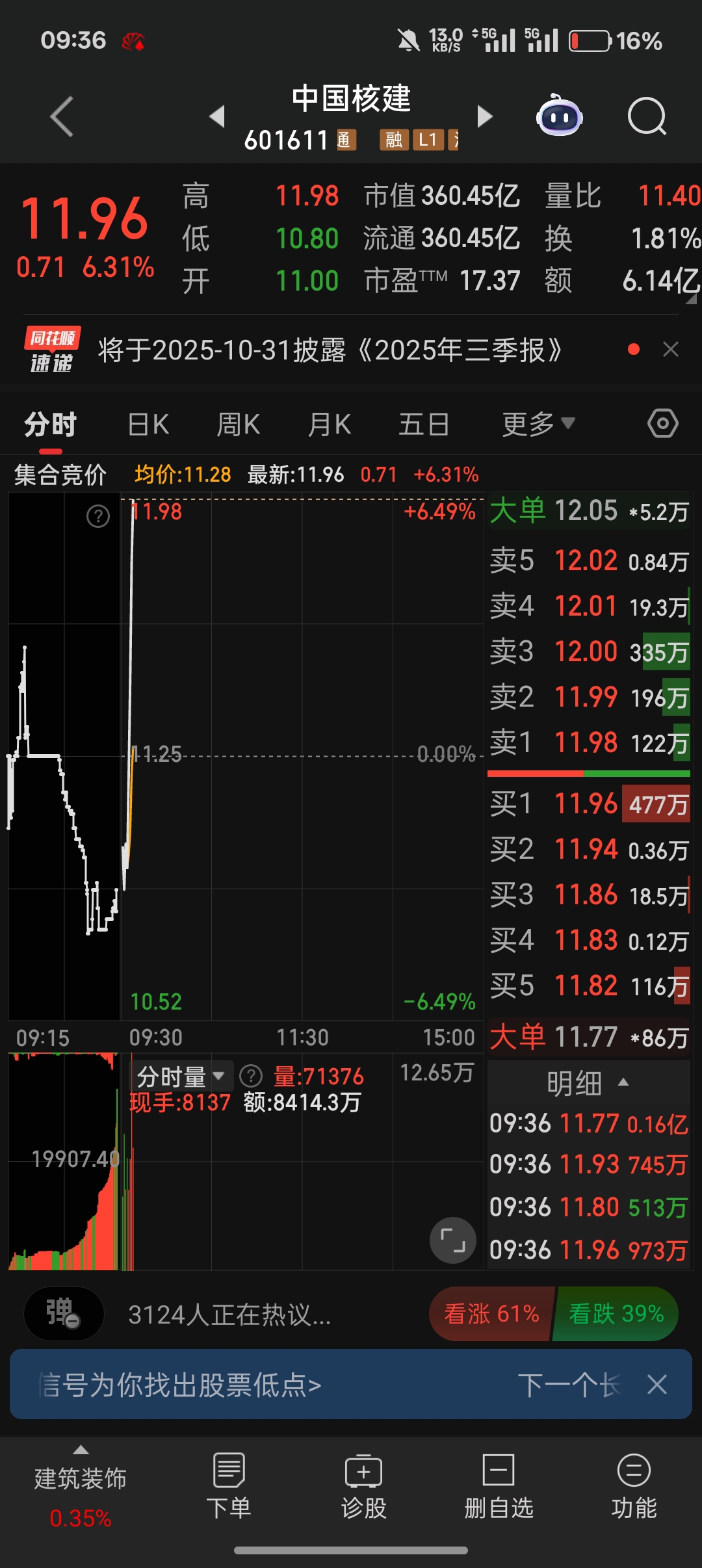$中核科技(SZ000777)$ 昨天上龙头吃肉