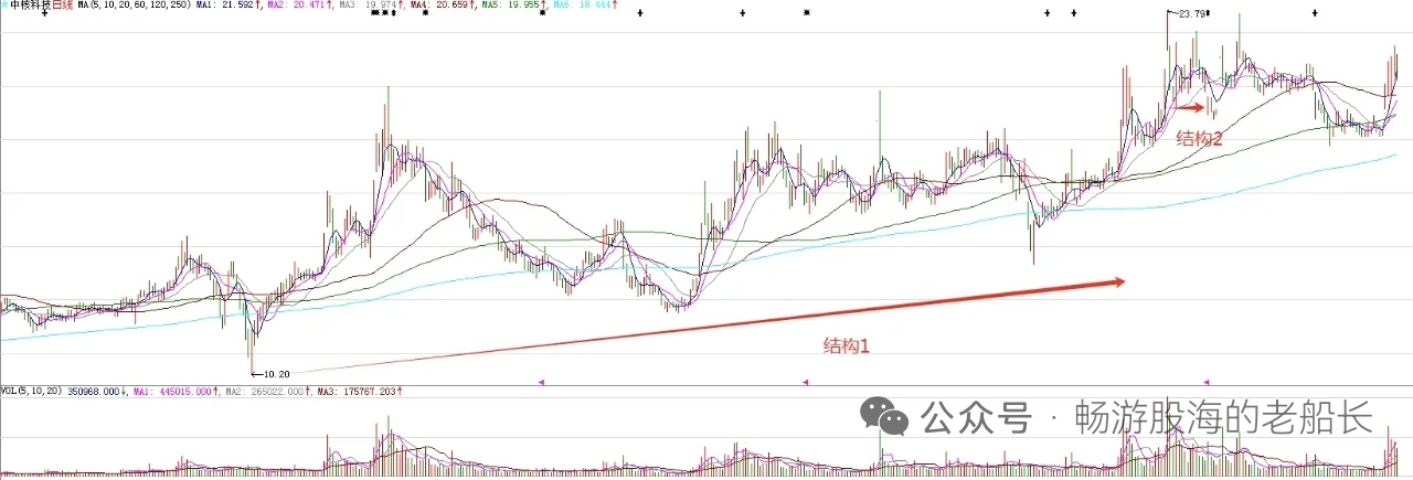 中核科技,今天低开高走,基本符合预期。收盘来看,今天释放了调整到位信号。昨天的调整,是小级别变盘节点,主要回踩五日均线。所以,周四开始,股价有望继续上涨。图中标注的大型结构1突破,意味着股价处在比较大的上涨趋势。结构2突破,意味着后期有波段上涨。接下来,股价还会继续波段上涨。