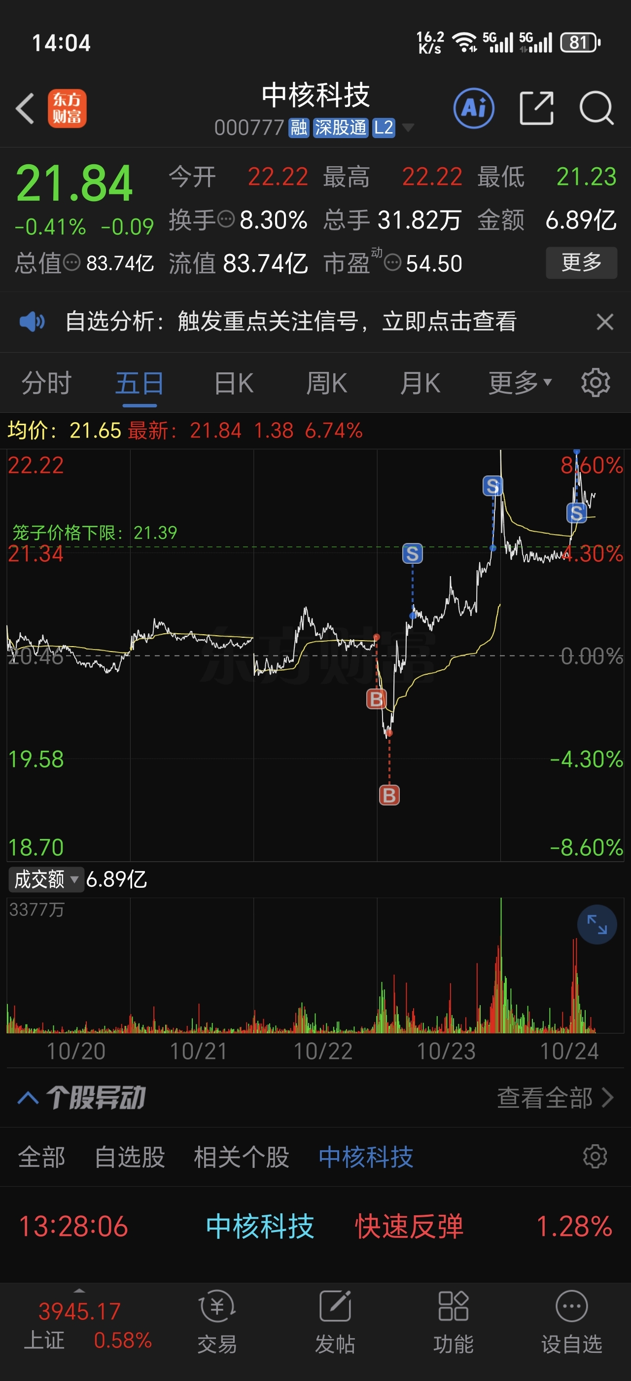 $中核科技(SZ000777)$ 前天收盘买的,今天清仓了