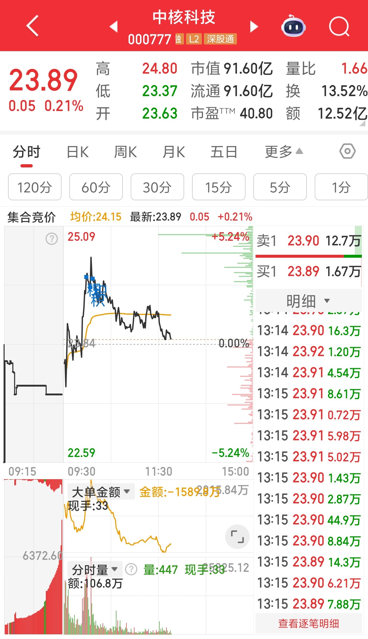 $中核科技(SZ000777)$ 大单一直跑,你不核,主力就核你