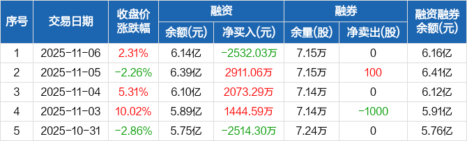 中核科技:融资净偿还2532.03万元,融资余额6.14亿元(11-06)