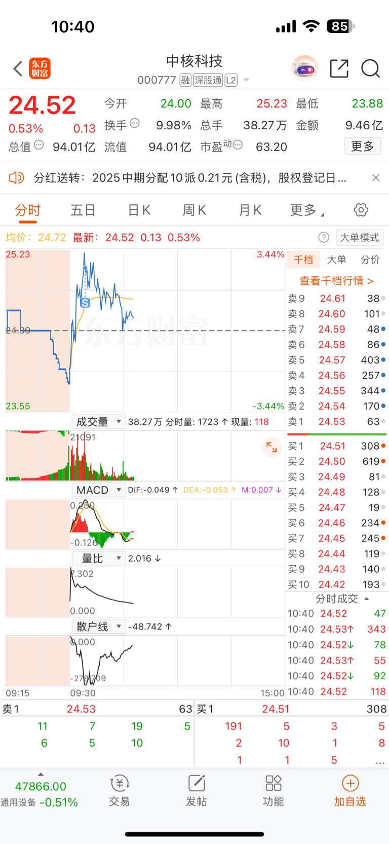 $中核科技(SZ000777)$ 此时不跑更待何时?兄弟们,这行情有赚就要跑,不要做贪嗔痴的那个人。
