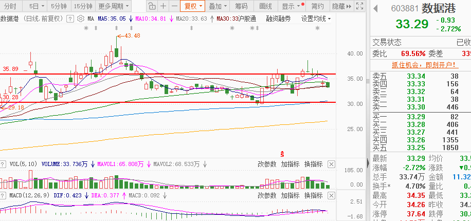 $数据港(SH603881)$:昨天早上震荡走低,完全不给一点空间,虽全天没能给到止跌企稳的强信号,但量能来看还是持续缩量,持续的挤压下短期有望爆发,基于公司直接受益于大模型算力需求爆发,方向上向上的概率是较大的。