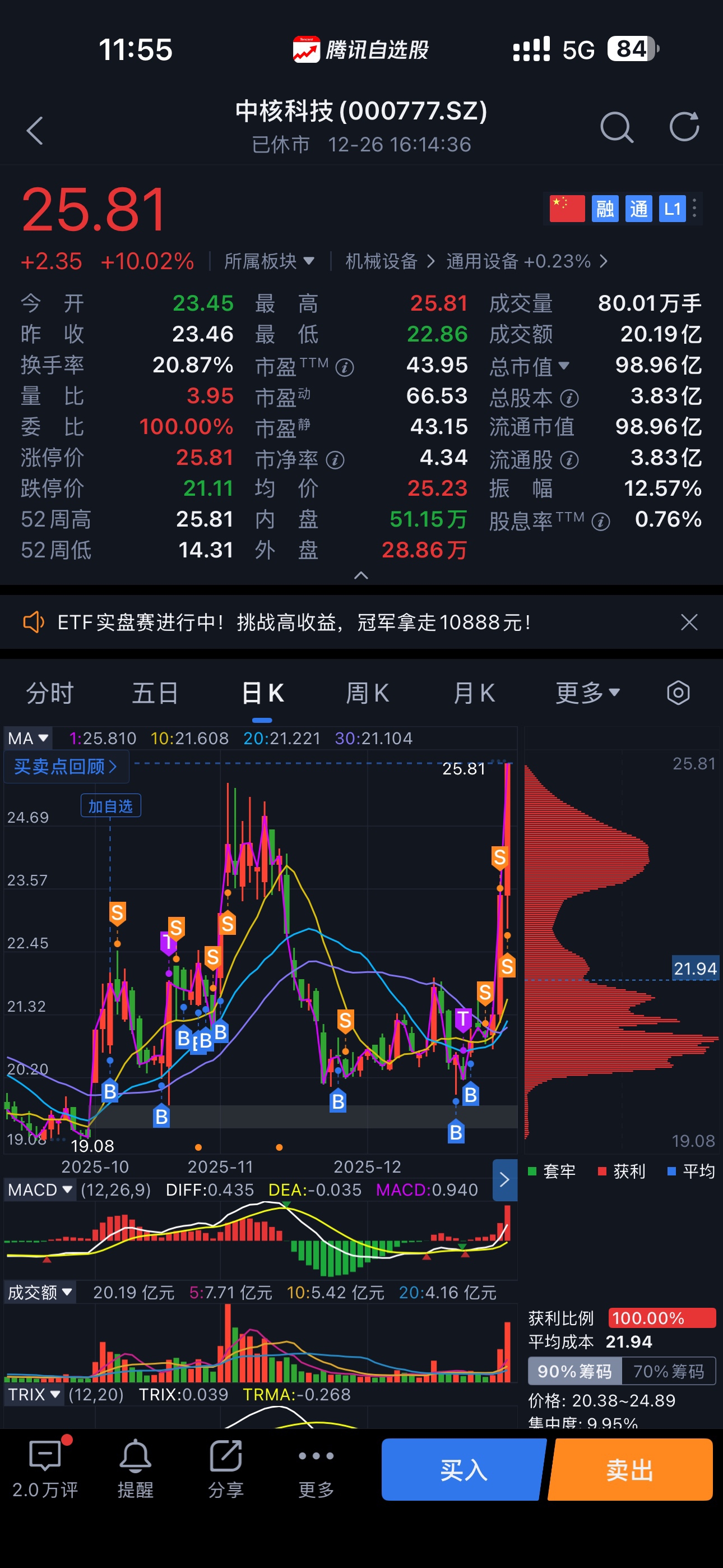 $中核科技(SZ000777)$ 主力的心思我最懂