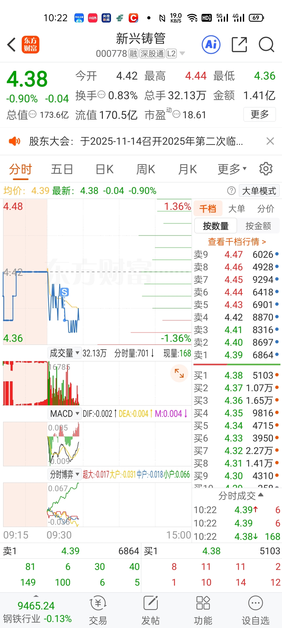 $新兴铸管(SZ000778)$ 我卖了,不要慌涨,等我回来