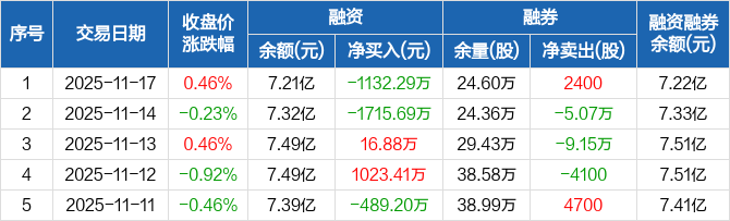 新兴铸管:融资净偿还1132.29万元,融资余额7.21亿元(11-17)