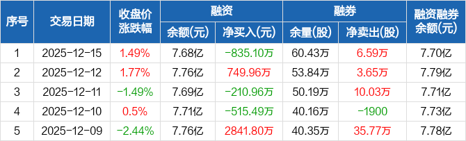 新兴铸管:融资净偿还835.1万元,融资余额7.68亿元(12-15)