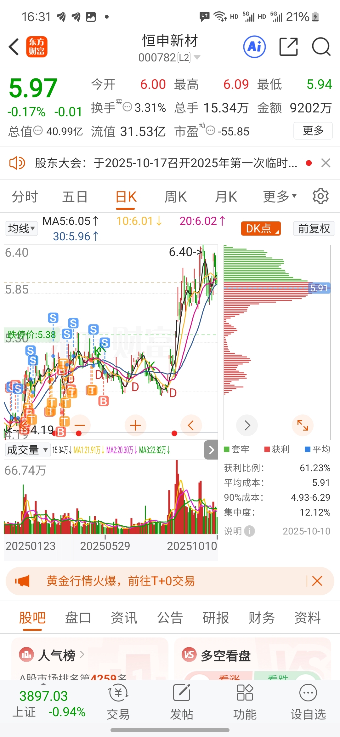 $恒申新材(SZ000782)$ 好久没来,星期一我觉得点火一手