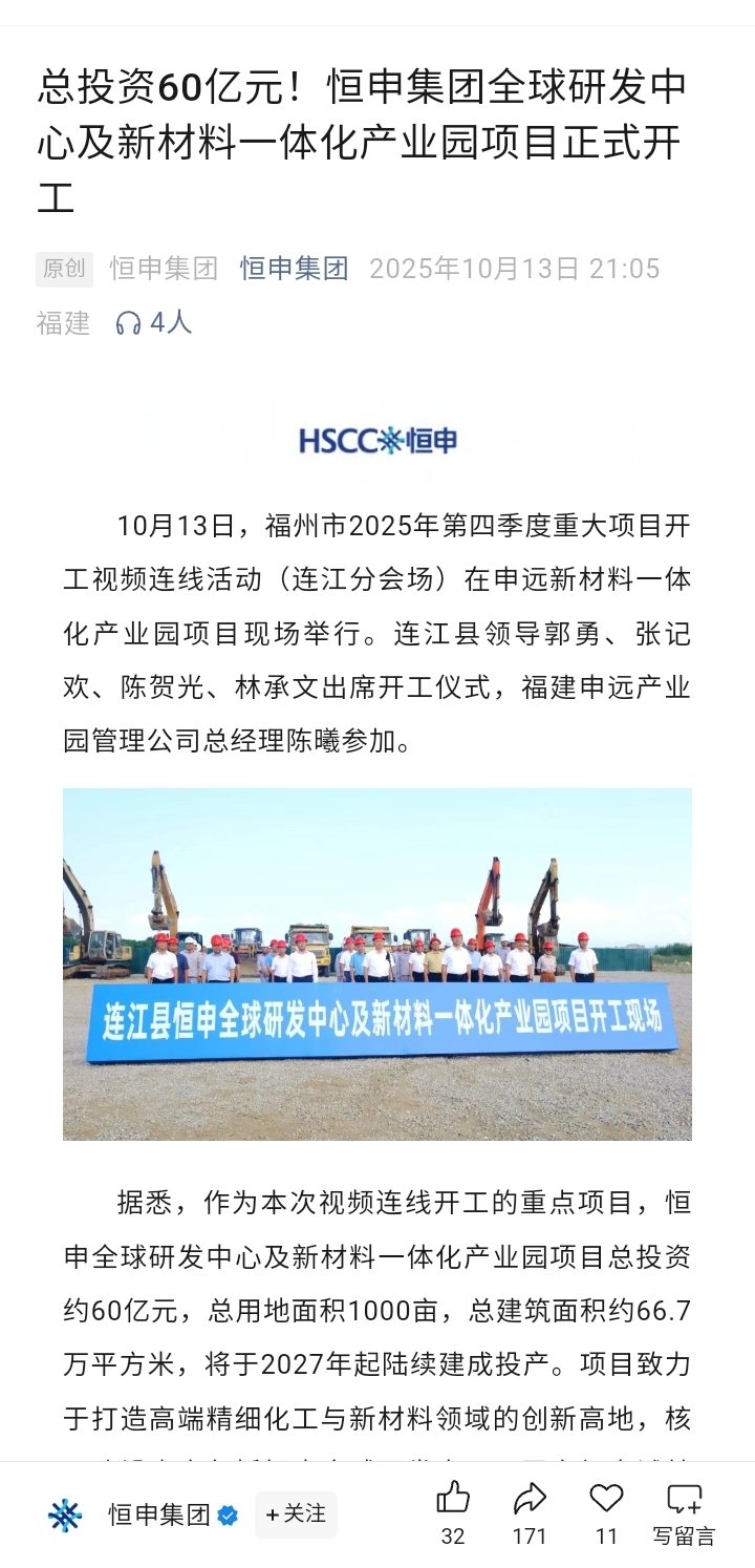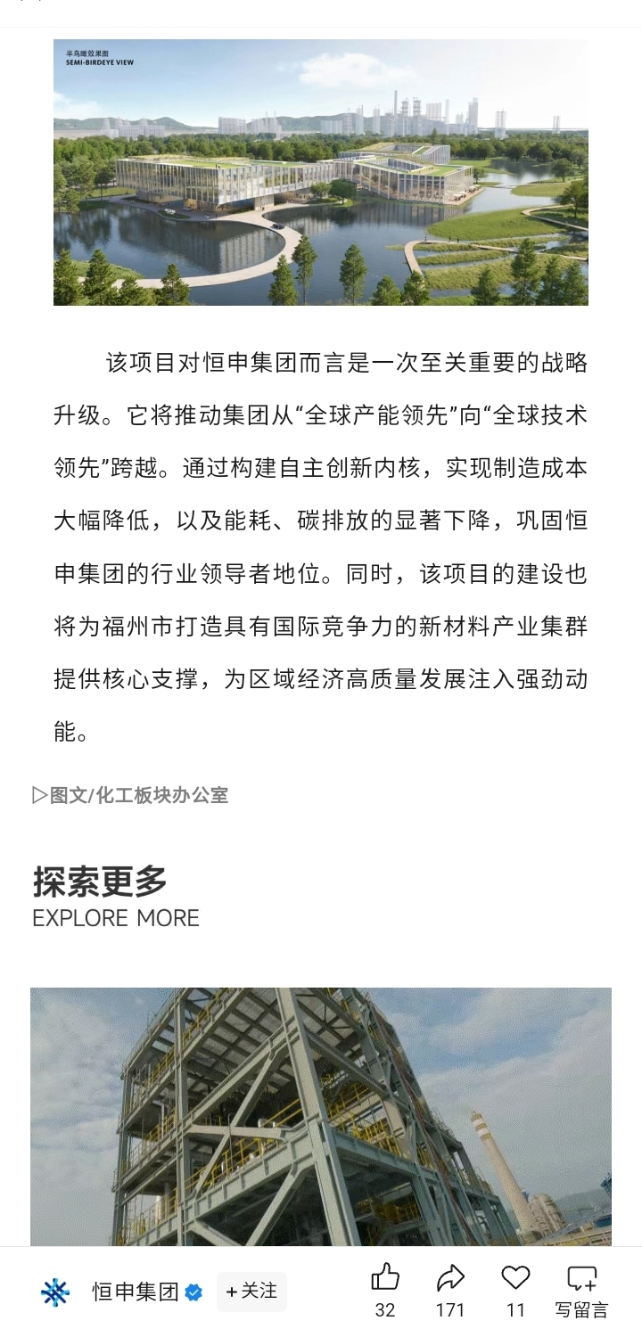 福建恒申就是恒申新材吗?投资60亿搞了个研发中心及新材料一体化产业园。广东江门又来个29亿的项目。恒申新材总市值怎么才39亿!?