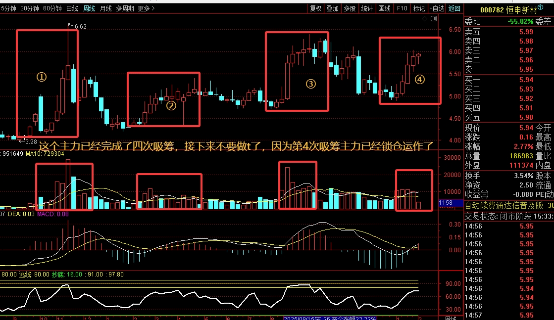 我为什么看好,第一,恒生新材最近走势强于大盘;第二,日线走势非常漂亮,红胖绿瘦;第三,主力筹备了一整年,进行了4次洗盘震荡吸筹,底部筹码坚如磐石;第四,2026年以黄金白银为首的金属已经开了好局,大宗类周期上涨已经开始;第五,化纤板块2025年8月才开始走了3浪,而恒申还在周线中枢震荡,未来借重组直接走锋龙一字板模式。从时间上看,恒生2026年必定开花结果。