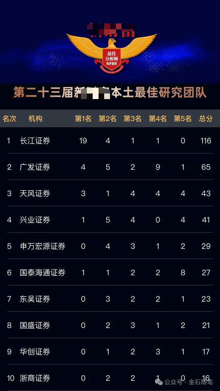 长江证券可是所有券商里面投研能力断档领先的,28个行业长江独揽19个第一,其他机