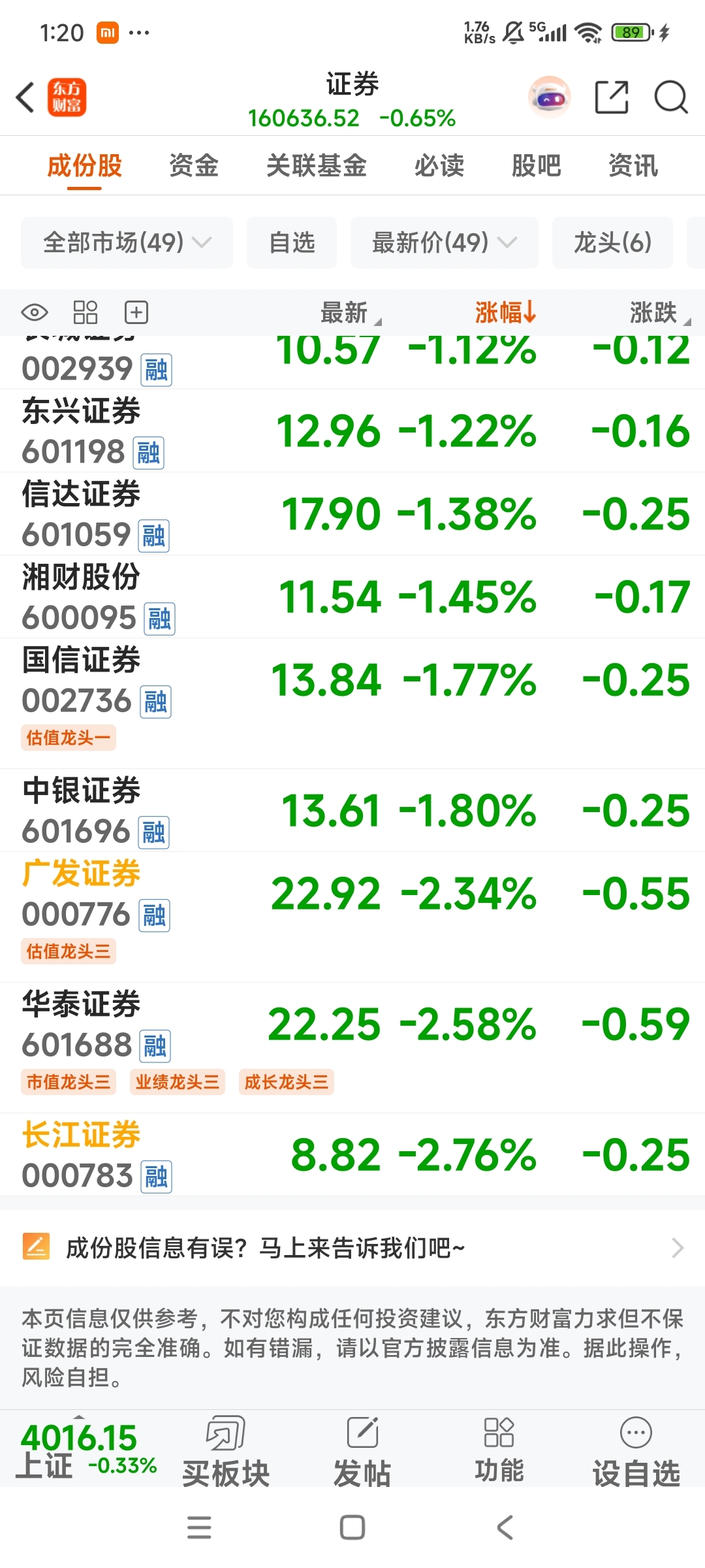 $长江证券(SZ000783)$ 排在证券板块倒数第一名