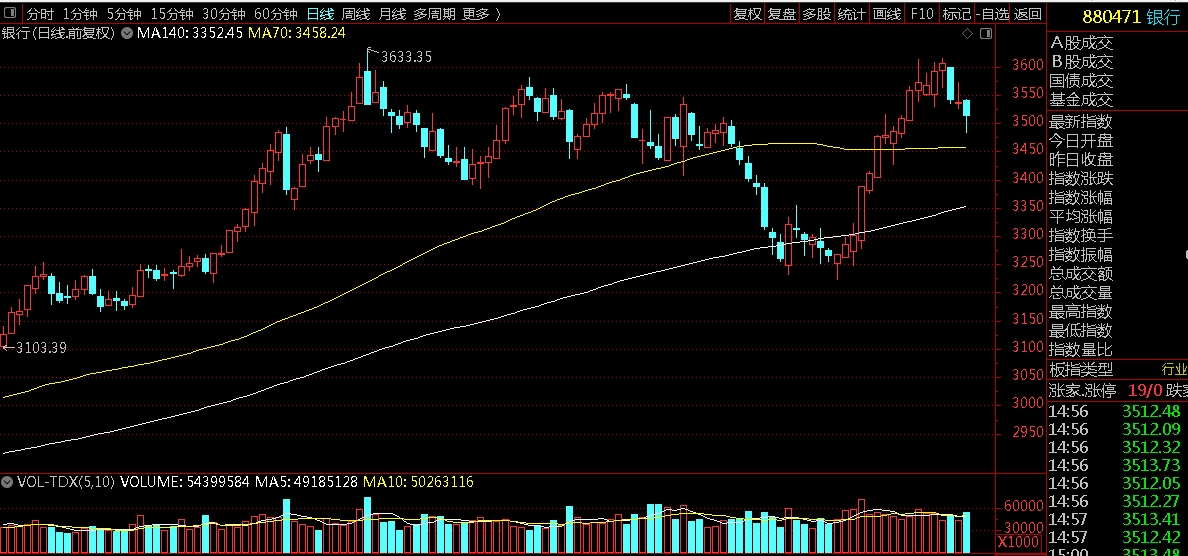 银行保险,银行股前边深幅回调到140天均线,结果出现了一个大反转。