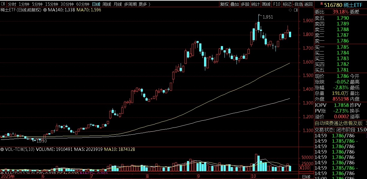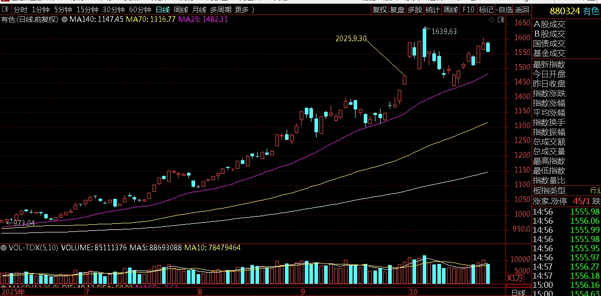 稀土与有色,目前都处于高风险状态,向下找寻70均线是大概率事件。不参与,还需要耐心等候。