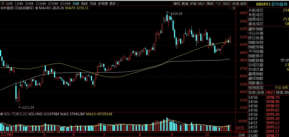 软件板块位置也差不多,目前也处于70均线支持的b浪反弹阶段,未来大概率还有一波c浪杀到半年线,才是终极买进位置。
