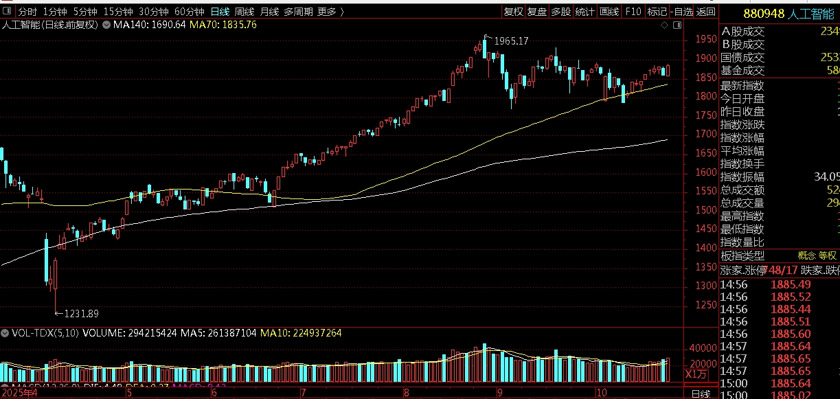 人工智能板块,已经提前到70均线,目前处于弱反弹状态,但这个反弹并不靠谱,一旦反弹结束,就会破位去找半年线。