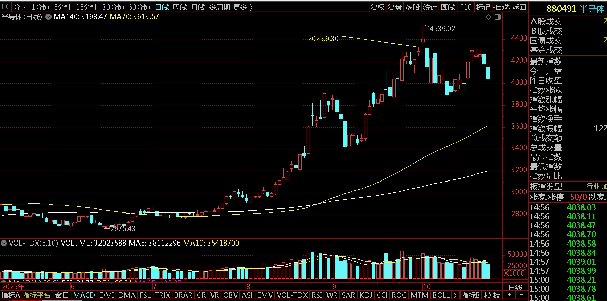 半导体板块,目前是多重头部顶背离,起码要等到70均线才有波较强势的反弹,而反弹过后,大概率会走进一步的回调,最终接近140均线止跌。