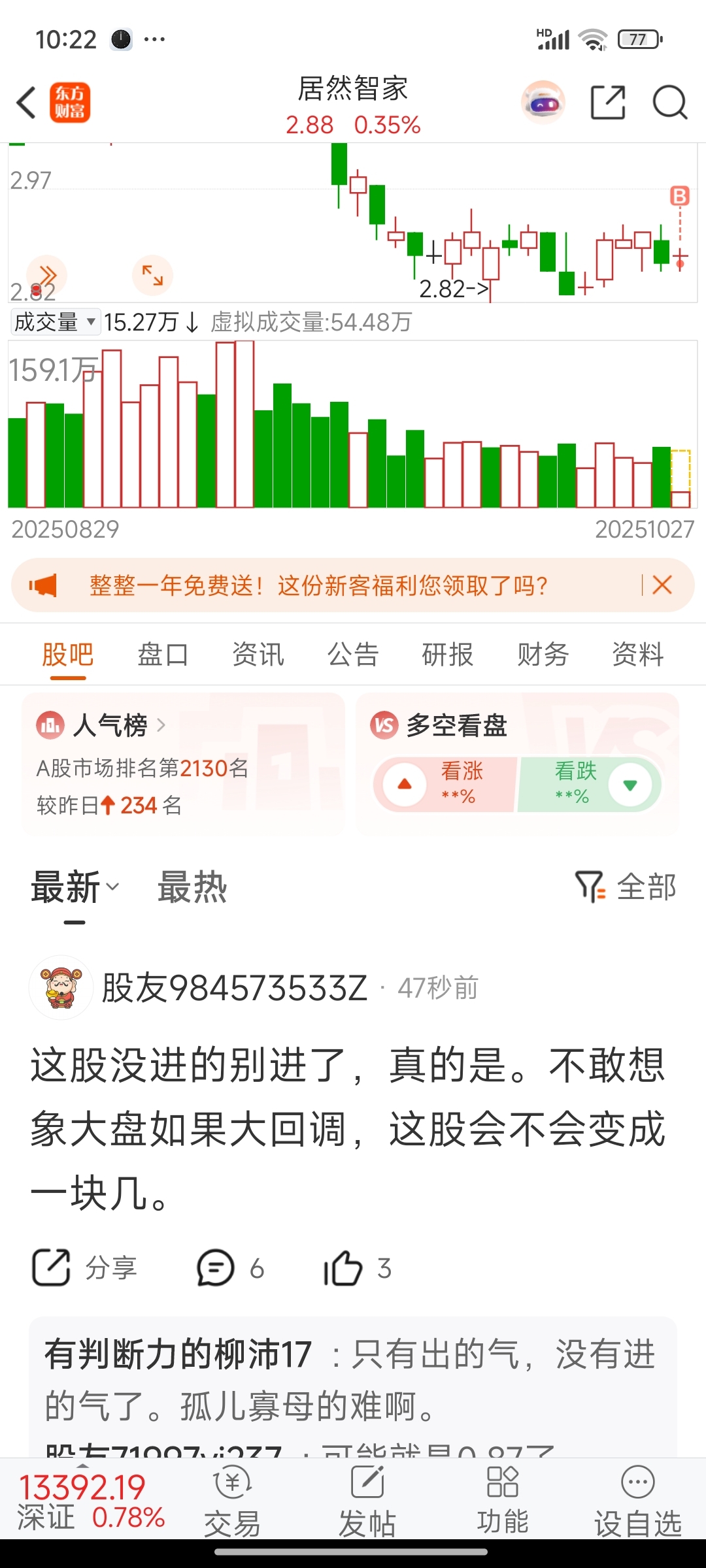 温馨提示: 1.根据《证券法》规定,禁止编造、传播虚假信息或者误导性信息,扰乱证券市场;2.用户在本社区发表的所有资料、言论等仅代表个人观点,与本网站立场无关,不对您构成任何投资建议。用户应基于自己的独立判断,自行决定证券投资并承担相应风险。《东方财富社区管理规定》
