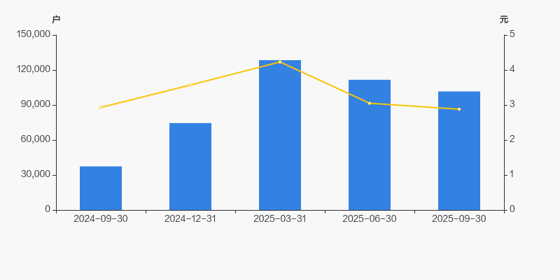 2024年9月30日至今,公司股东户数成倍增长,区间涨幅达171.84%。2024年9月30日至2025年9月30日区间股价下降1.71%。