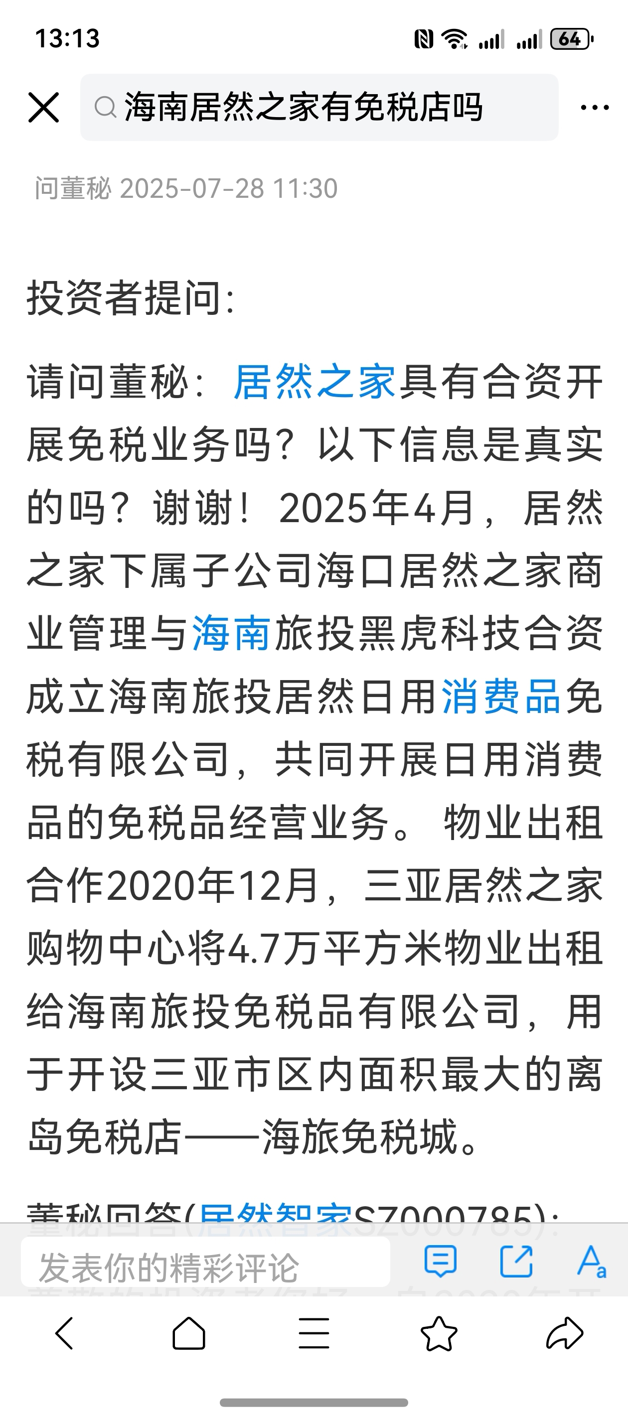 $居然智家(SZ000785)$ 居然之家在海南也有店。有免税店。