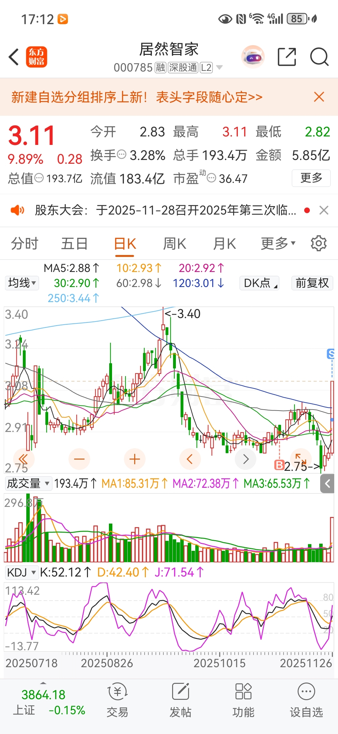 $居然智家(SZ000785)$ 本想做个差价结果卖飞了