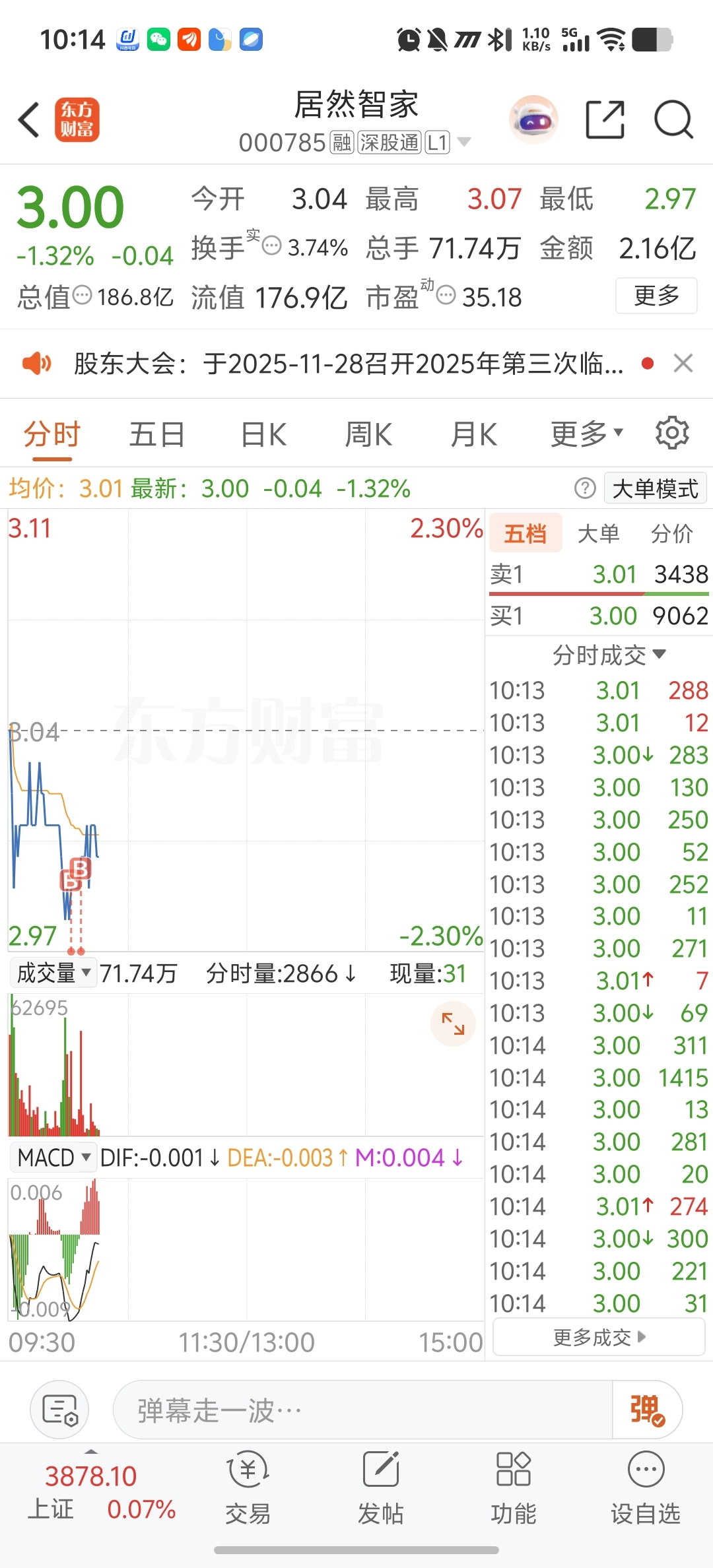$居然智家(SZ000785)$ 再下来一次才买了一半