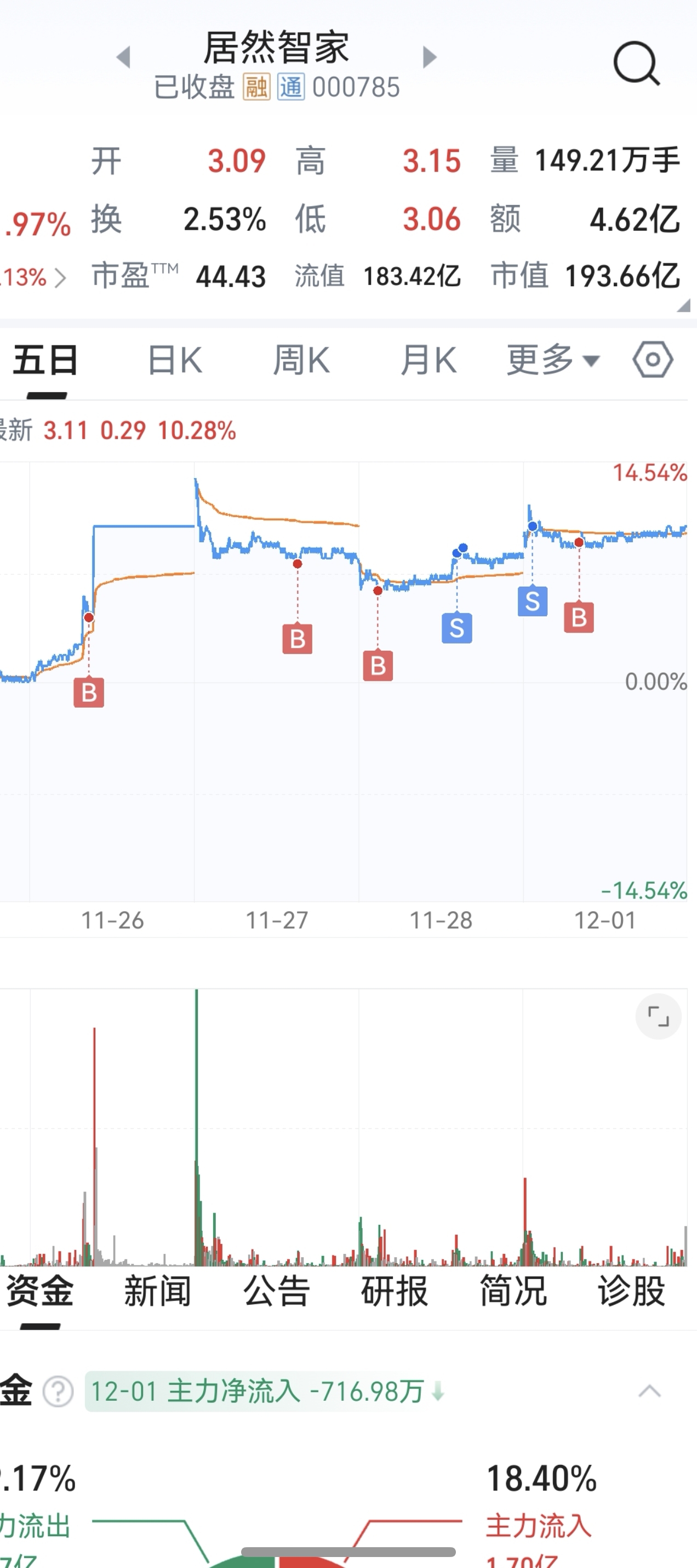 $居然智家(SZ000785)$ 做T是门艺术,已经把成本T到2.82了。仓位还变大了。坐等起飞!