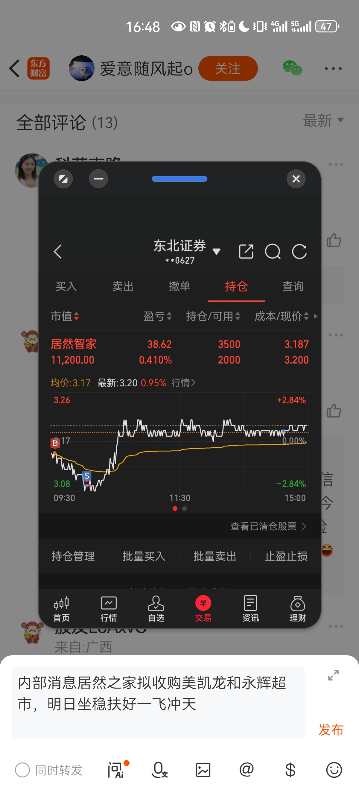 $居然智家(SZ000785)$ 内部消息居然之家拟收购美凯龙和永辉超市,明日坐稳扶好一飞冲天