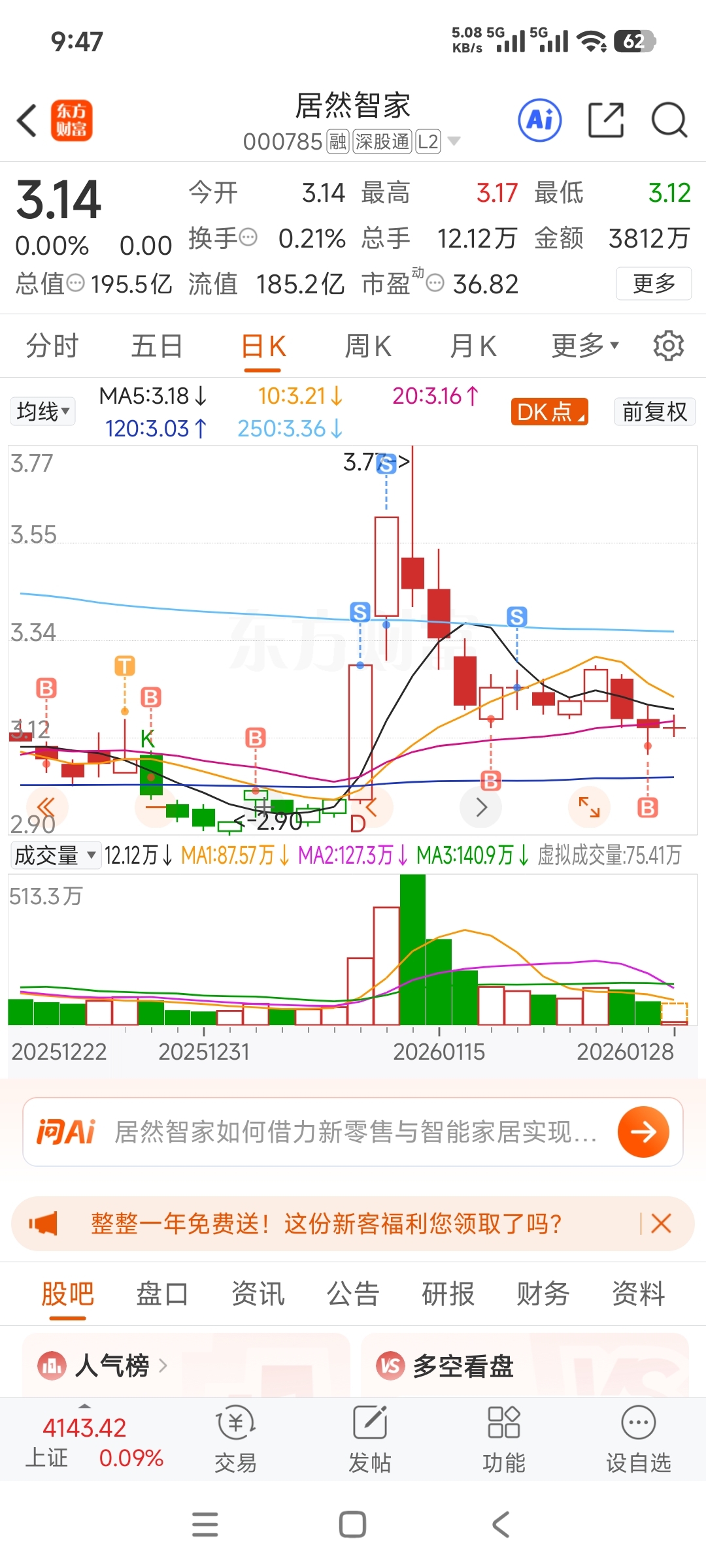 $居然智家(SZ000785)$ 既然这样,我可要卖了,蚊子小也是肉啊
