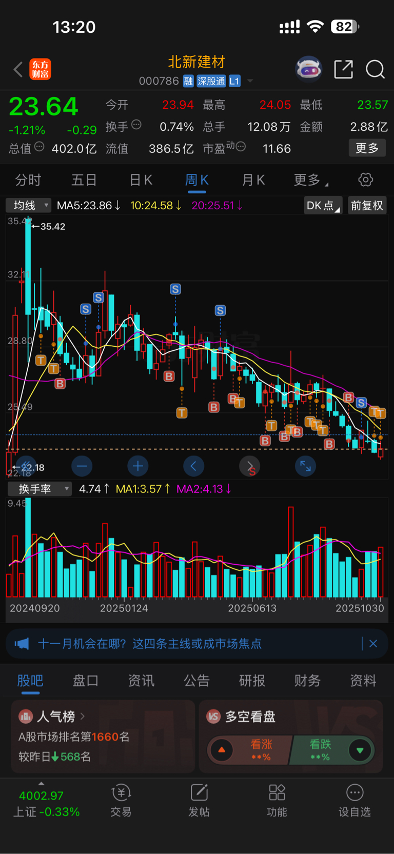 $北新建材(SZ000786)$ 真的快没有子弹了主力