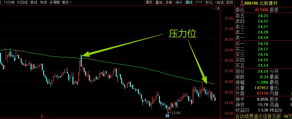 $北新建材(SZ000786)$ 中期趋势比较弱,连续的整体回落下调的走势,暂时没有看到反转的形态,并且每一次小反抽都被大均线压制,走得很标准。这种形态下暂时不考虑参与,管住手,除非拉起来站稳绿色大均线并且逐步走稳向上后才能有机会。
