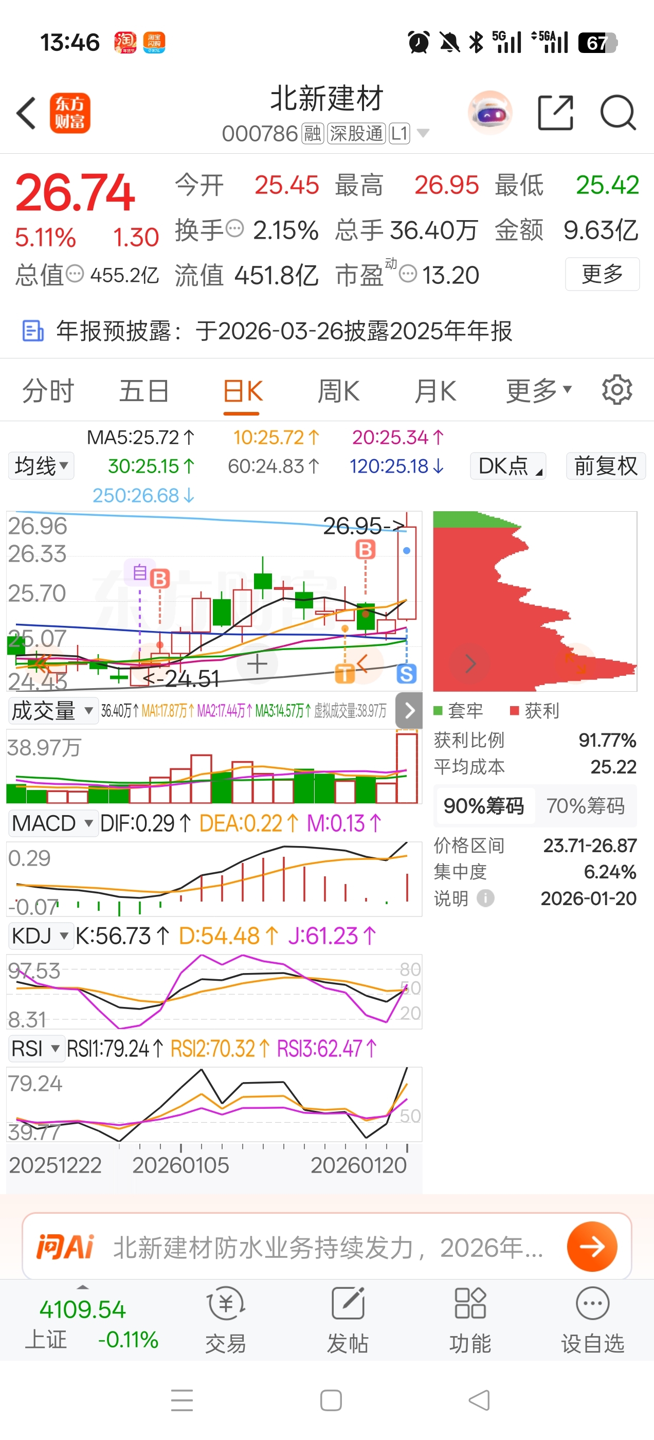 $北新建材(SZ000786)$ 还留了100股