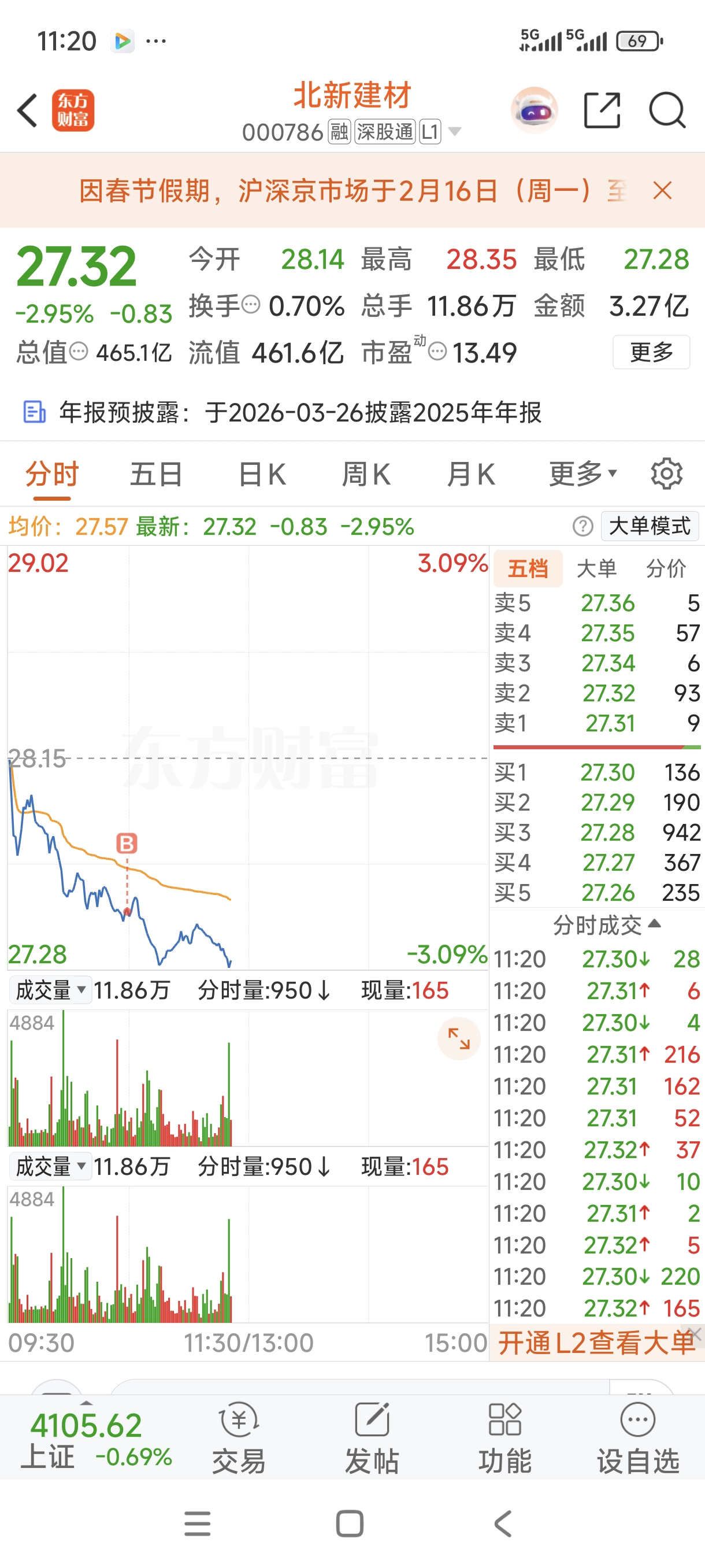 $北新建材(SZ000786)$ 最后一天,买进来了,
